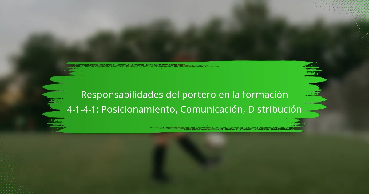 Las responsabilidades principales de un portero en una formación 4-1-4-1 incluyen una posición efectiva, una comunicación clara y una distribución precisa. Estos elementos son cruciales para mantener la solidez defensiva y facilitar las jugadas de ataque.